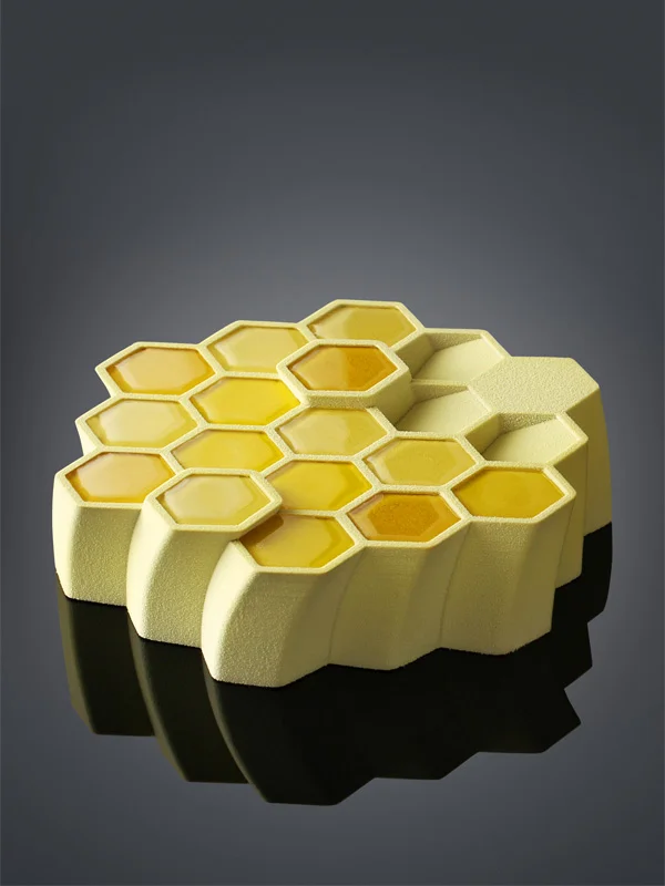 Zoals bijen honing verzamelen, hebben wij het allerzoetste verzameld en onze eigen wonderbaarlijke honingraat gecreëerd. Gemaakt van een unieke confituur van sinaasappel, mango en wortel. Verrijkt met crème fraîche en een spannende combinatie van noten met karamel, dat allemaal op een bodem van lichte biscuit.