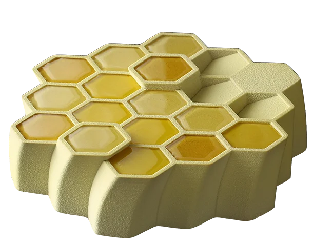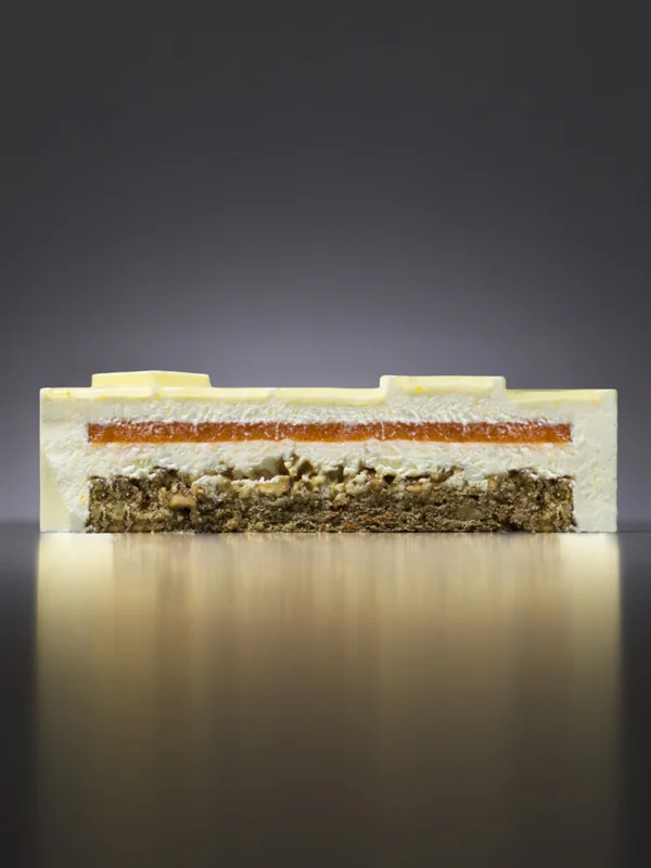 Cream, sugar, milk, carrots, eggs, white chocolate, cocoa butter, orange, walnuts, mango, flour, olive oil, water, yoghurt powder, oil, pork gelatin (halal gelatin on request), dextrose, glucose syrup, pectin, baking powder, salt, cinnamon powder, clove powder, nutmeg powder.